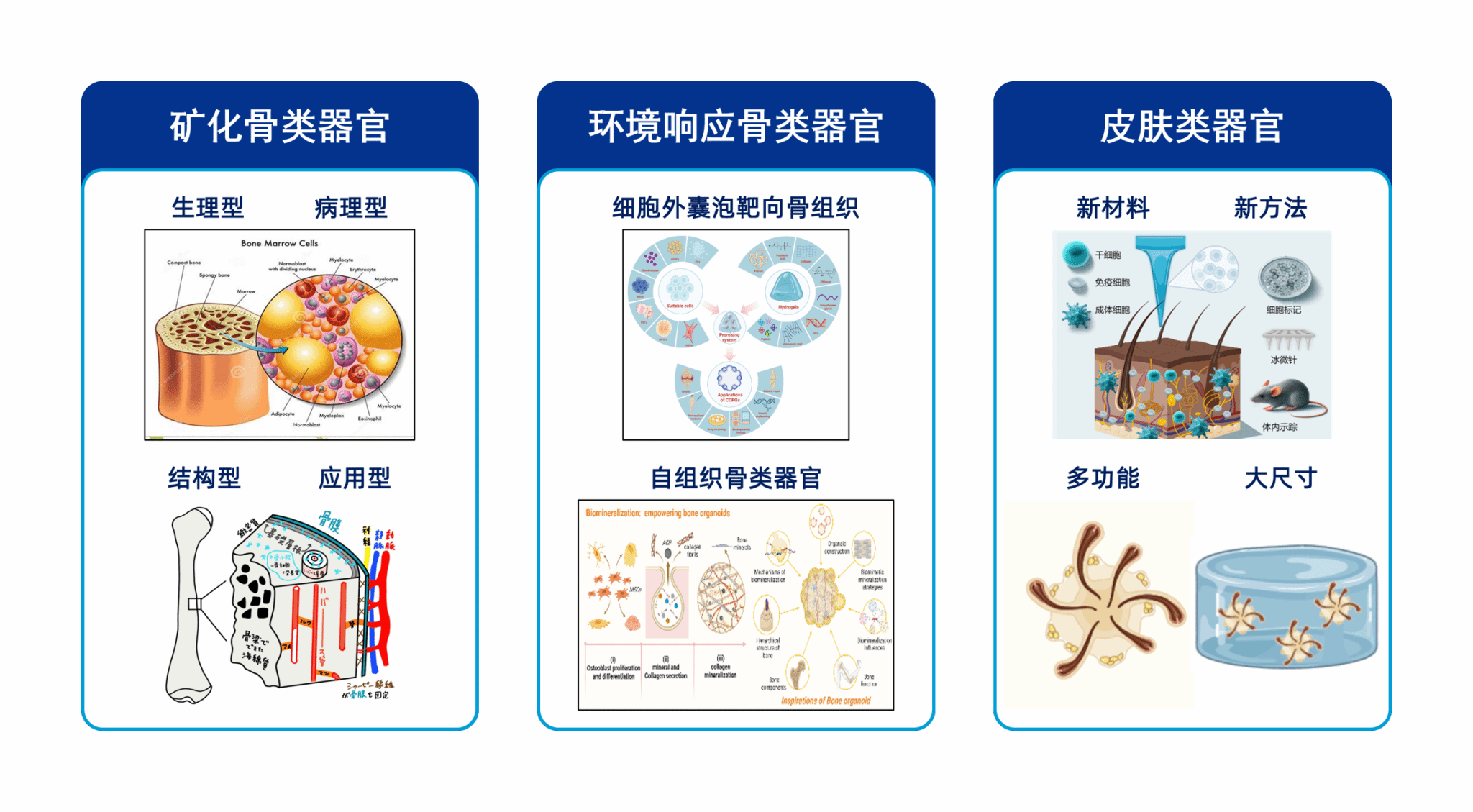 1、聚焦骨相关疾病的发病机制及组织微环境,构建多种功能骨类器官;