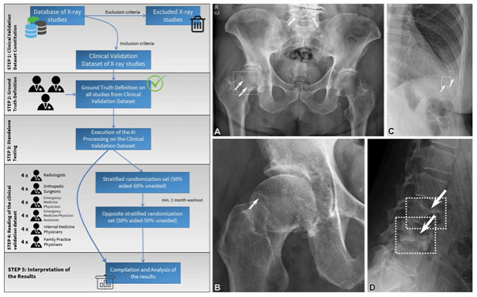直观展示AI如何自动定位骨折区域,并强调其在繁忙场景(急诊、夜班)对降低漏诊/误诊的潜在价值。
