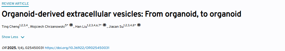 Organoid Research 期刊第一卷第四期于2025年12月正式上线!本期共收录7篇文章,包含5篇综述文章(Review),1篇原创研究论文(Original Research),1篇评述文章(Commentary)。全部论文均为开放获取,供全球读者免费阅读!